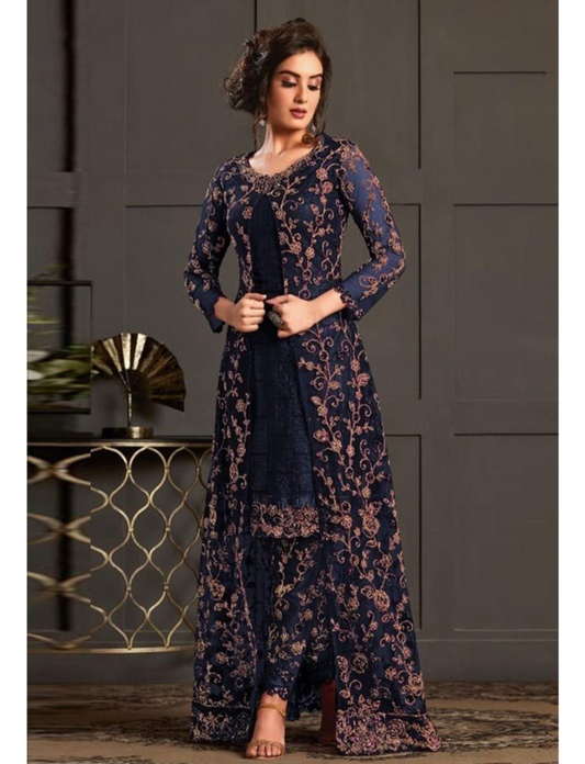 Elegant Pure Faux Georgette Silk Top & Plazzo Set with Dupatta – Multi-Needle Sequins Embroidery
