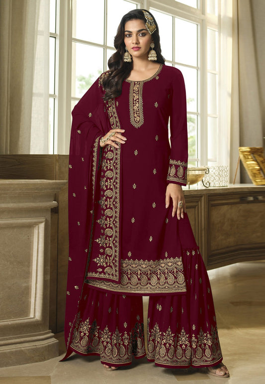 Designer Heavy Pure Faux Georgette Silk Sharara Set with Dupatta – Multi-Needle Sequins Embroidery