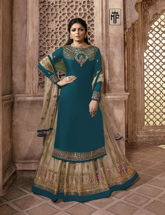 Blue Designer Georgette Butterfly Net Ghaghara Style Salwar Suit By Dealbazaars For Womens