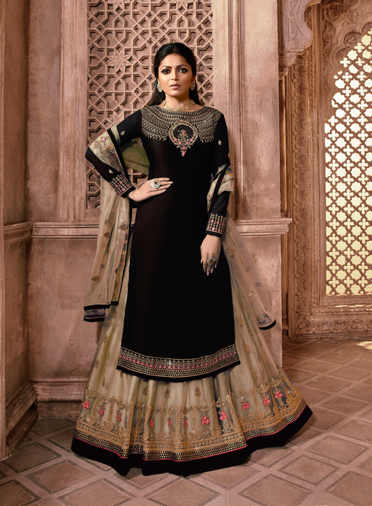 Black Designer Georgette Butterfly Net Ghaghara Style Salwar Suit By Dealbazaars For Womens