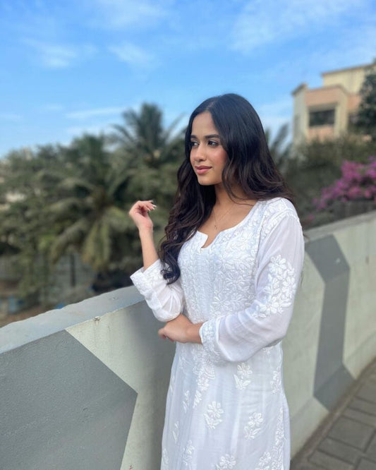 White Stylish Rayon Cotton Kurta Set with Fancy Thread Work Fully Stitched and Ready to Wear Perfect for Any Occasion