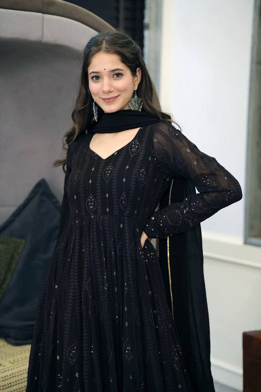 Black Georgette Heavy Embroidery Work Gown with Dupatta Bridensmind Dresses black Party Wear Gown For Woman