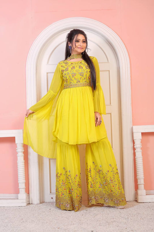 Women's Net Embroidery Sharara Salwar Suit Set - Ready To Wear Stitched Suit