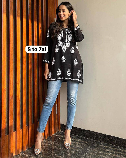FLORAL MUSLIN STYLISH TUNIC SHORT KURTA FOR GIRLS AND WOMEN WESTERN TOPS