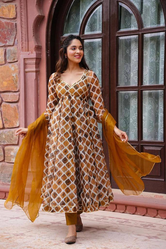 Multi Color Digital Print Tebby Organza Anarkali Gown