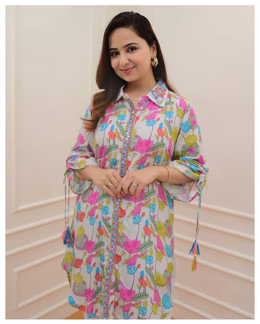 MULTI FLORAL DIGITAL PRINTED TULIP MUSLIN CO-ORD SET