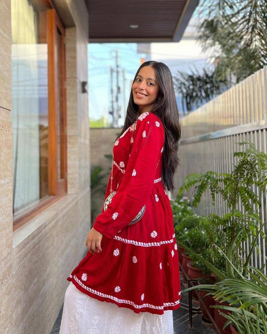 Beautiful Hand Embroidered Chikankari Long Flared Kurta sets women Salwar Kameez Readymade Indian Cotton Dress