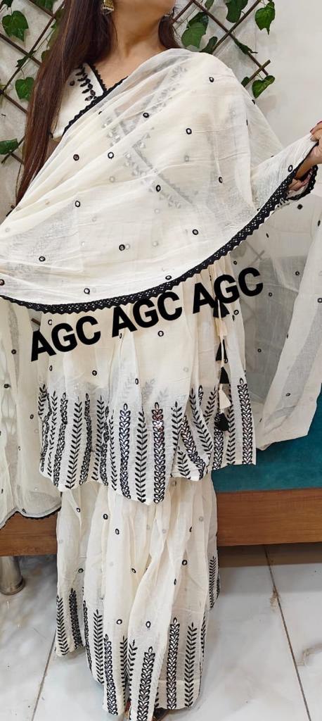 Designers Kurti Pent, Pure Khadi Cotton, Cotton Inner (Full), Embroidery With Sequence Work, 3/4 With Embroidery Work Lace