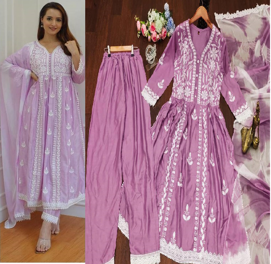 Premium Rayon Fabric Cotton Top with beautiful chikankari work ,full pent with Nazneen dye Duppta set