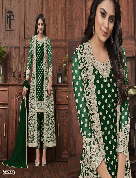 Beautiful Green Anarkali Style Shalwar Kameez Lengha Suits Embroidery Sequence Worked Designer Hand Made Salwar Kameez Dupatta Dress