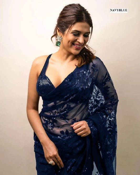 Party Wear Georgette Sequence Worked Designer Saree With Beautiful Blouse Piece
