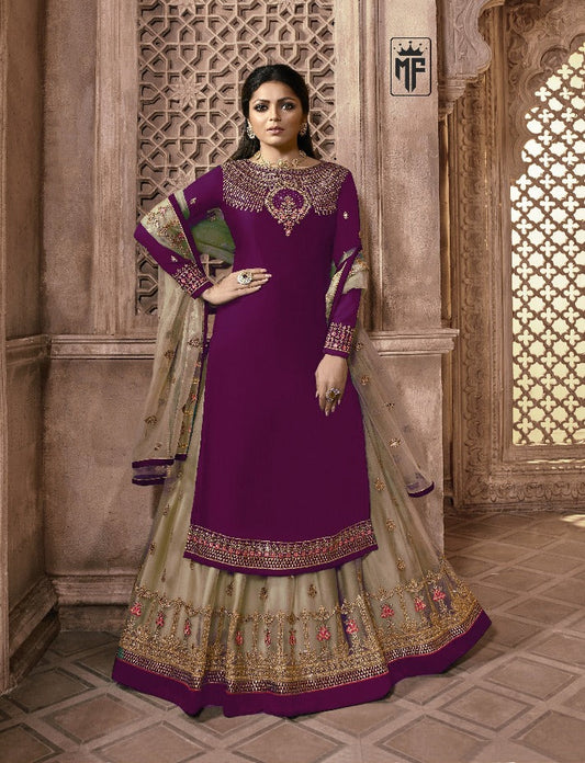 Maroon Designer Georgette Butterfly Net Ghaghara Style Salwar Suit By Dealbazaars For Womens