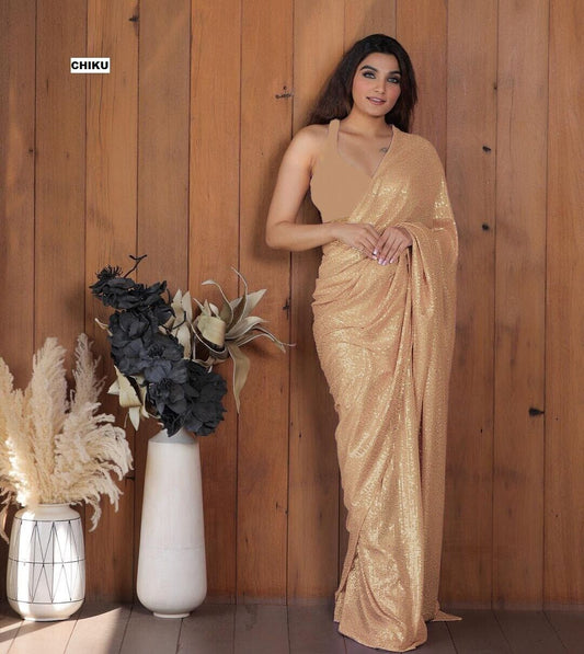 SEQUINS RANI NEW BLOCK BUSTER BOLLYWOOD 3MM EMBROIDERY DOUBLE SEQUINS WORK PARTYWEAR SAREE FOR WOMEN'S