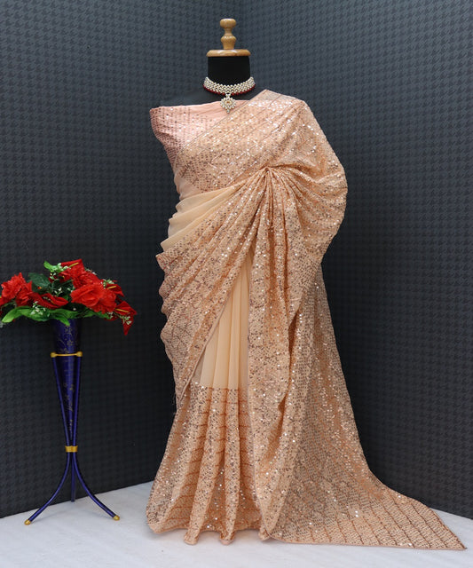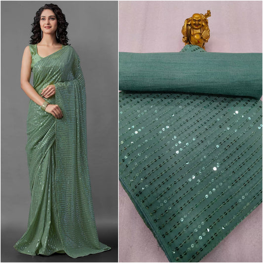 Luxury Heavy Georgette Saree with 3mm & 5mm Dual Sequins Work and Plain Banglori Silk Blouse
