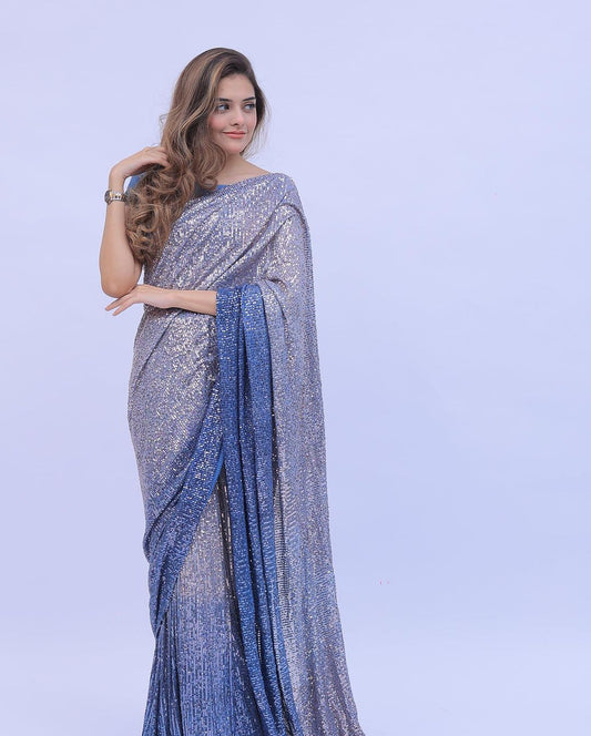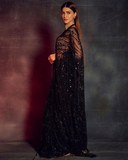 Black Color Heavy Dual Sequins Embroidery Work Saree For Women's