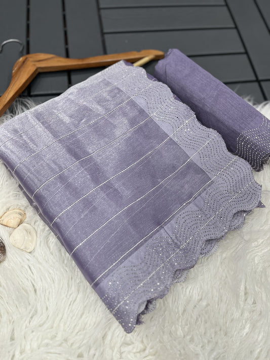 Heavy Quality Faux Georgette Saree with Jari Embroidery & LCD Diamond Mirror Border | 4.4 Mtr Work | Banglori Silk Blouse with Heavy Embroidery & LCD Diamond (Unstitched)