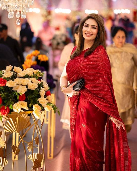 Red Party Wear Sequins Work Saree & Work Blouse Week Special Edition Women Saree