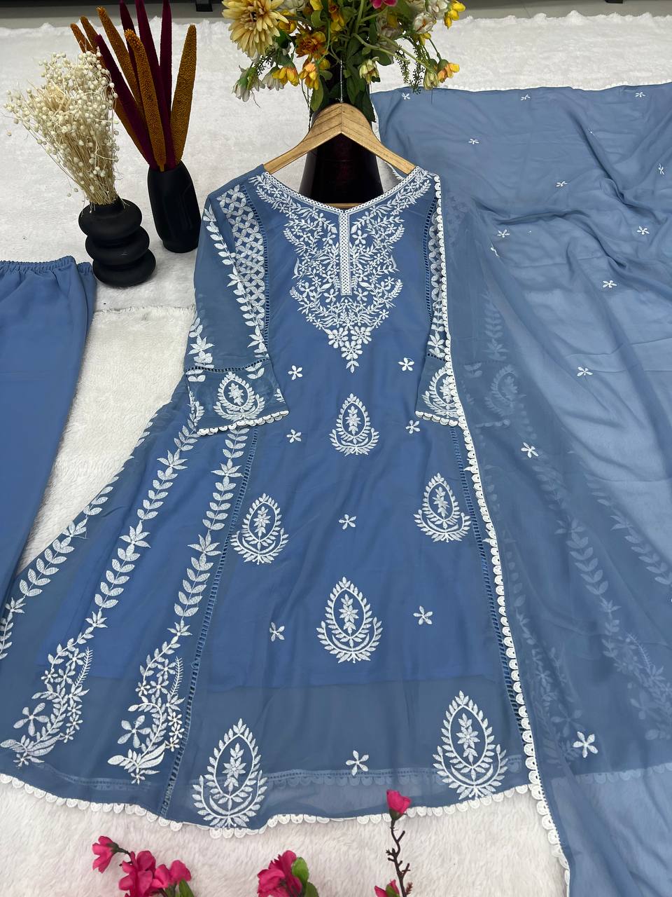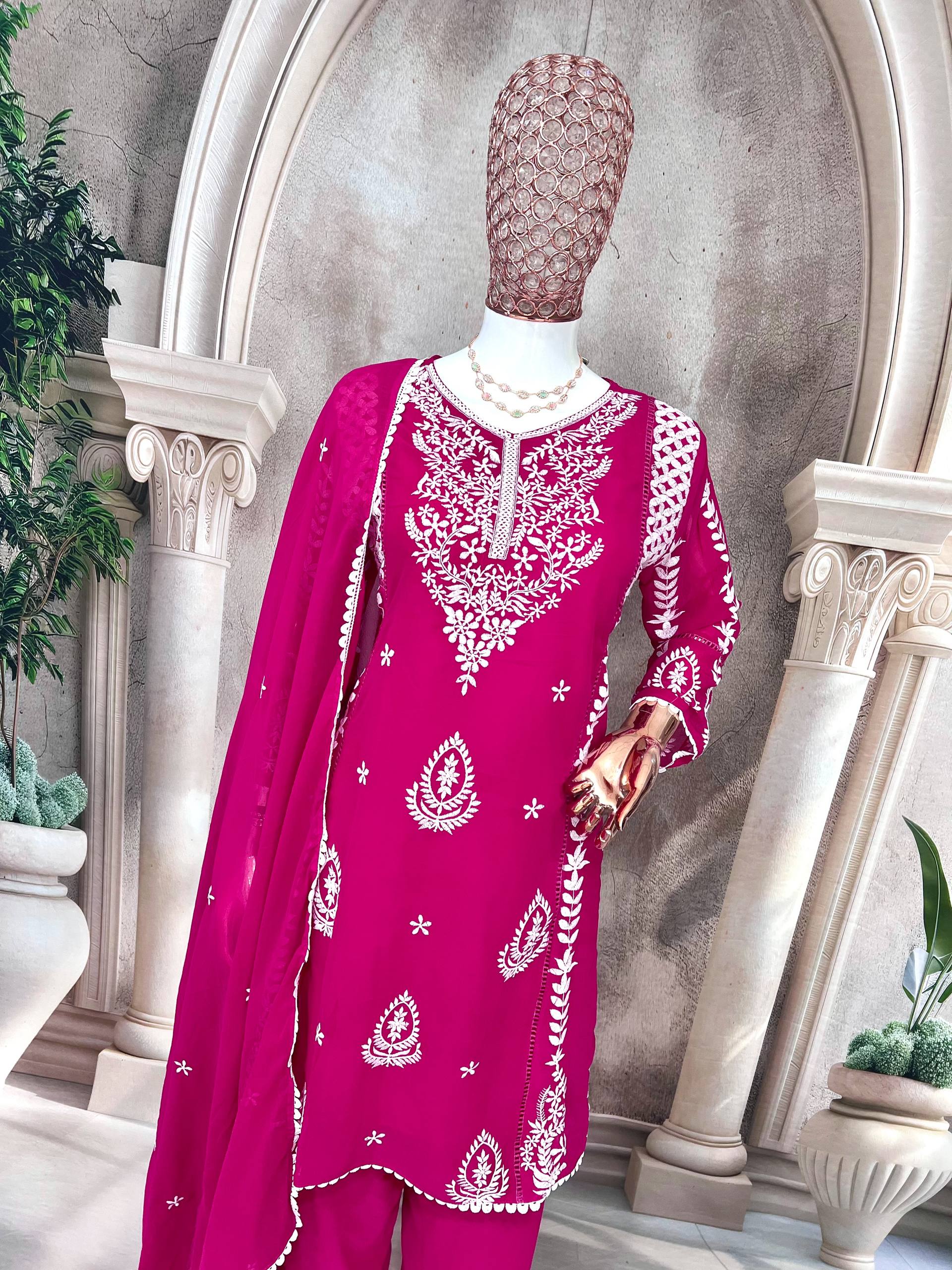 Elegant Pure Faux Georgette Silk Top & Plazzo Set with Dupatta – Multi-Needle Sequins Embroidery