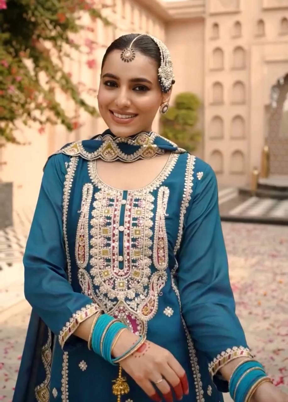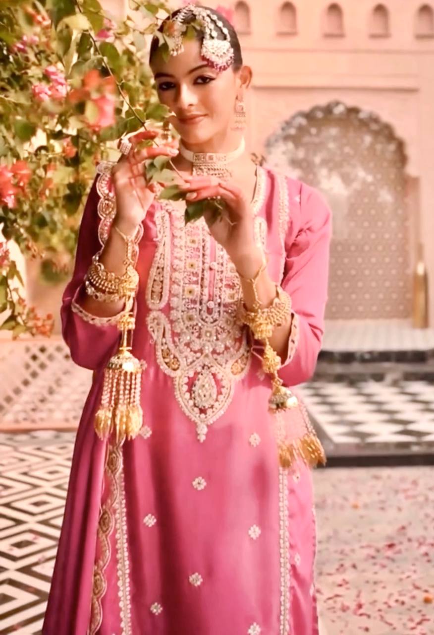 Heavy Pure Chinon Silk Embroidered Kurti Pant Set with Dupatta (Fully Stitched | Real Mirror & Sequin Work)