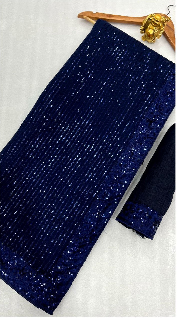 Full Saree Of Georgette With Heavy 3MM Sequins Embroidery Work