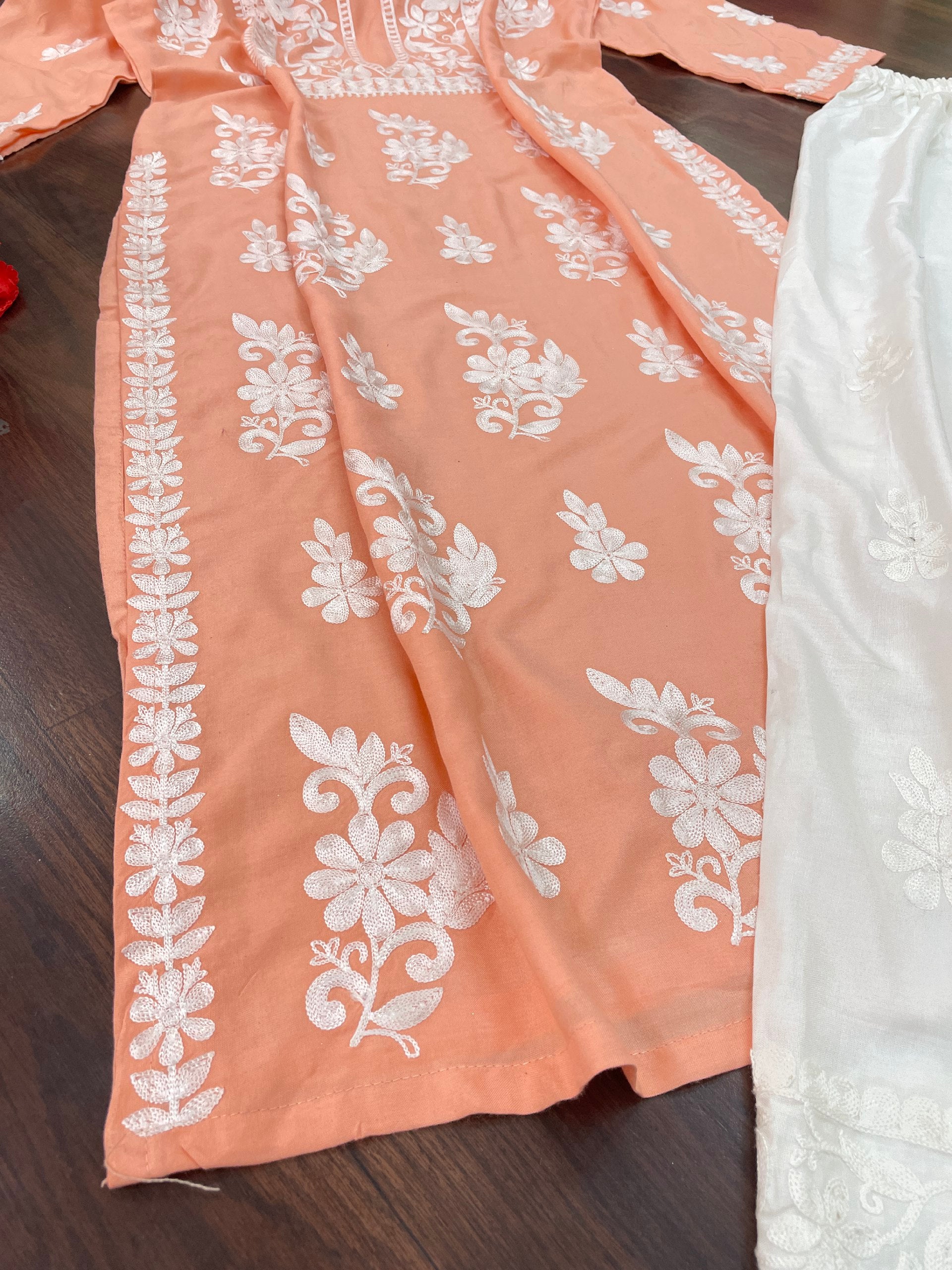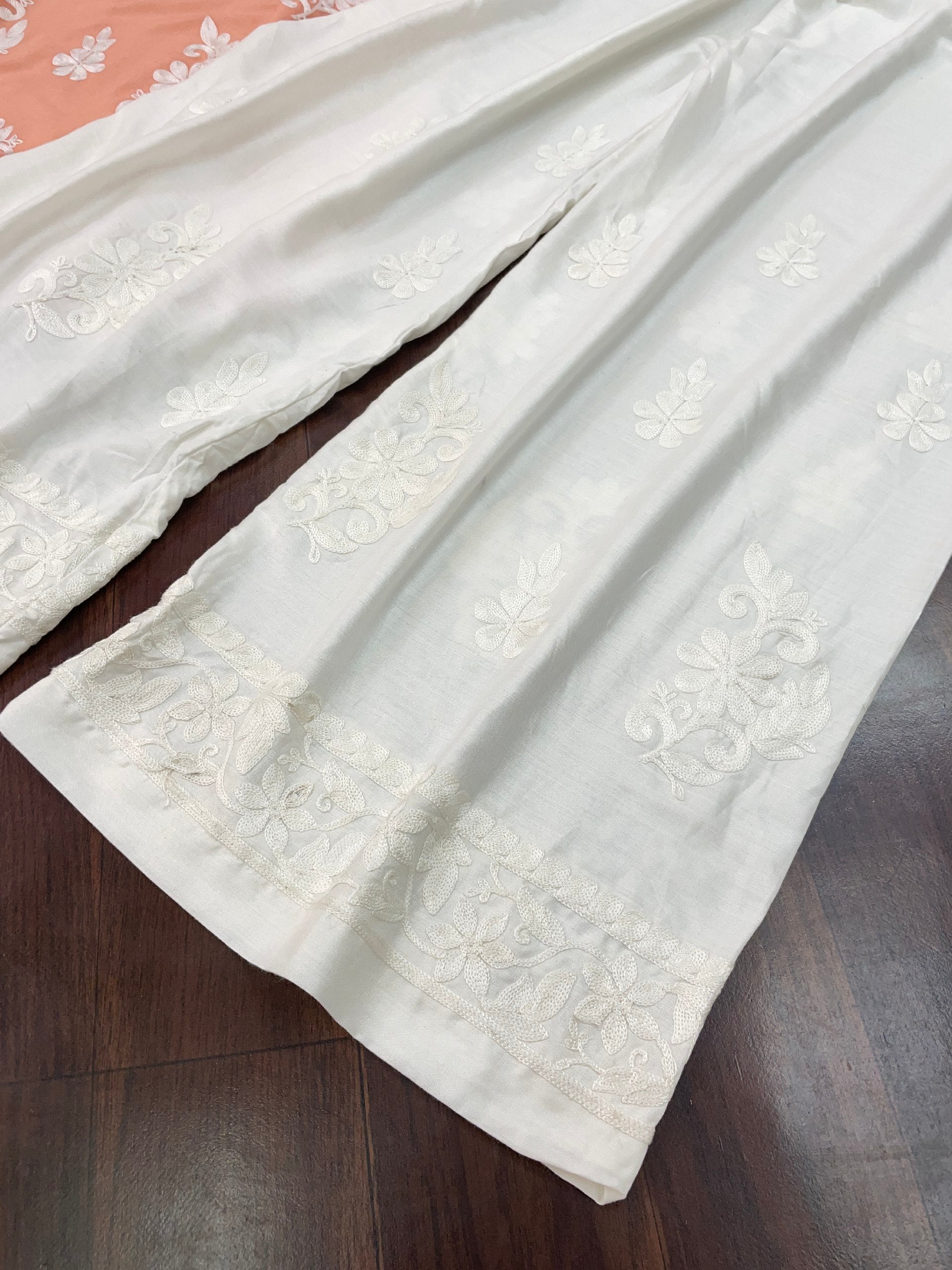 Peach&Purple Rayon Cotton Chikankari Kurta With Palazzo Set