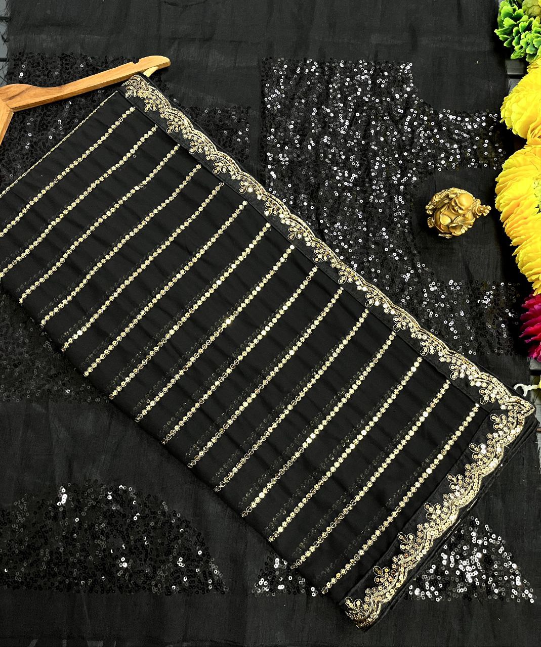 Full Saree Of 60 Gram Georgette With Heavy 5MM Sequins Embroidery Work