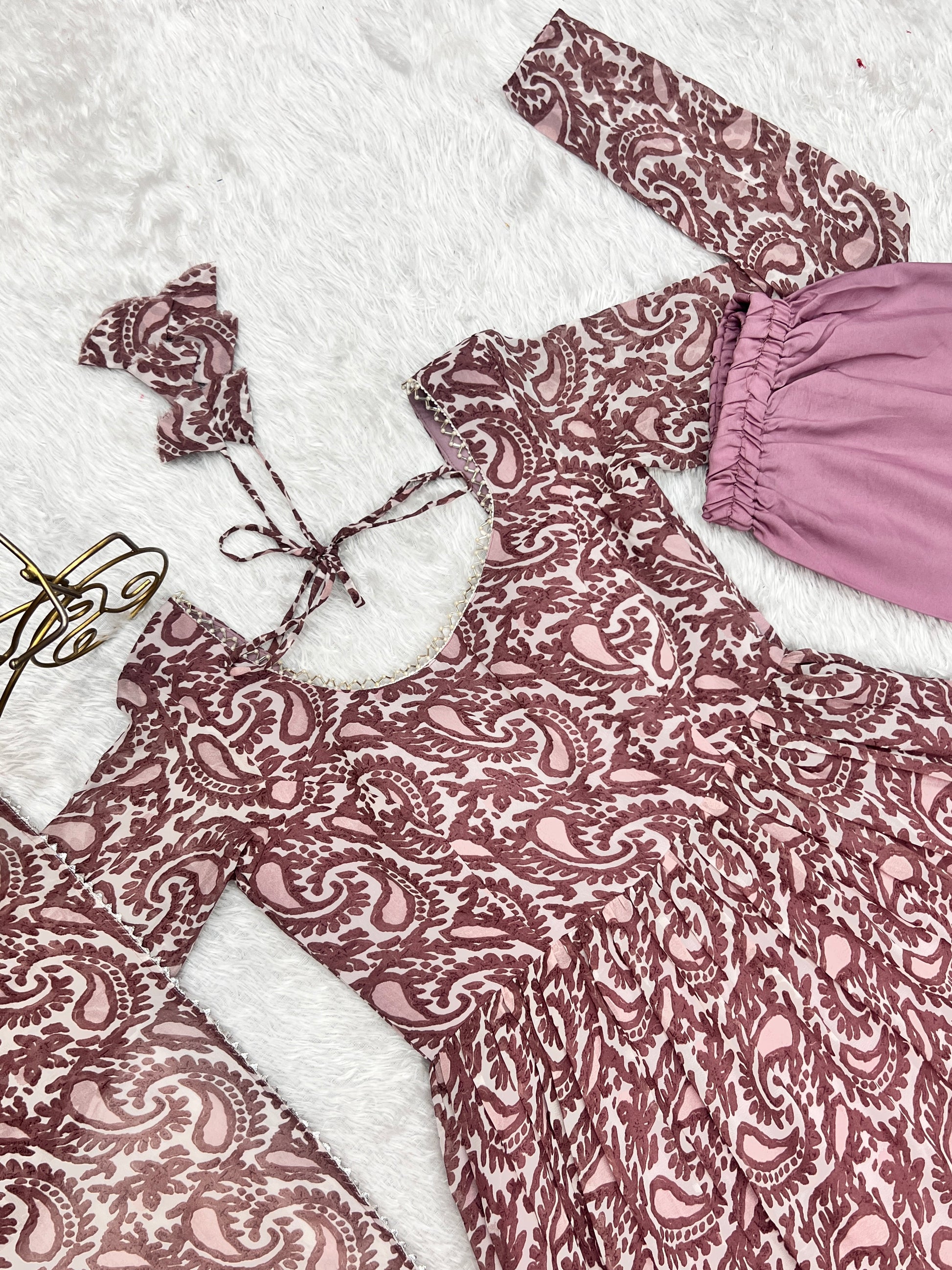 PURE SOFT FOX GEORGETTE PRINT FABRIC FULLY FLAIR ANARKALI,WITH DUPPTA SET,PENT READY TO WEAR