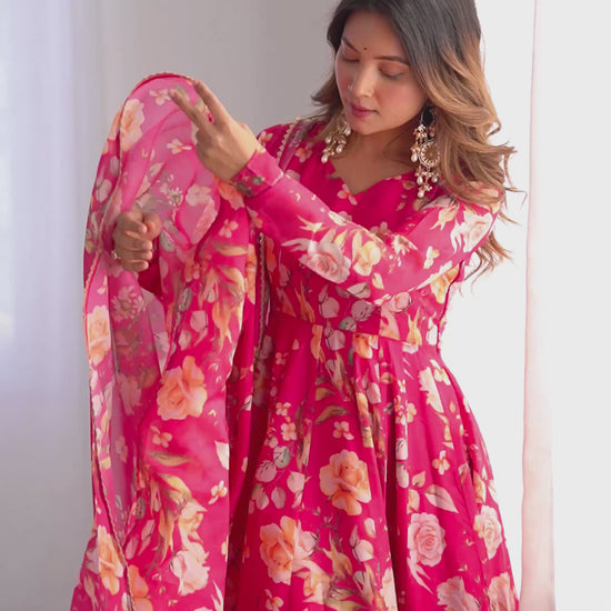 *PURE SOFT ORGANJA SILK FABRIC FULLY FLAIR KALI PATTERN AND CANVAS PATTA WITH DUPPTA SET, PANT READY TO WEAR*