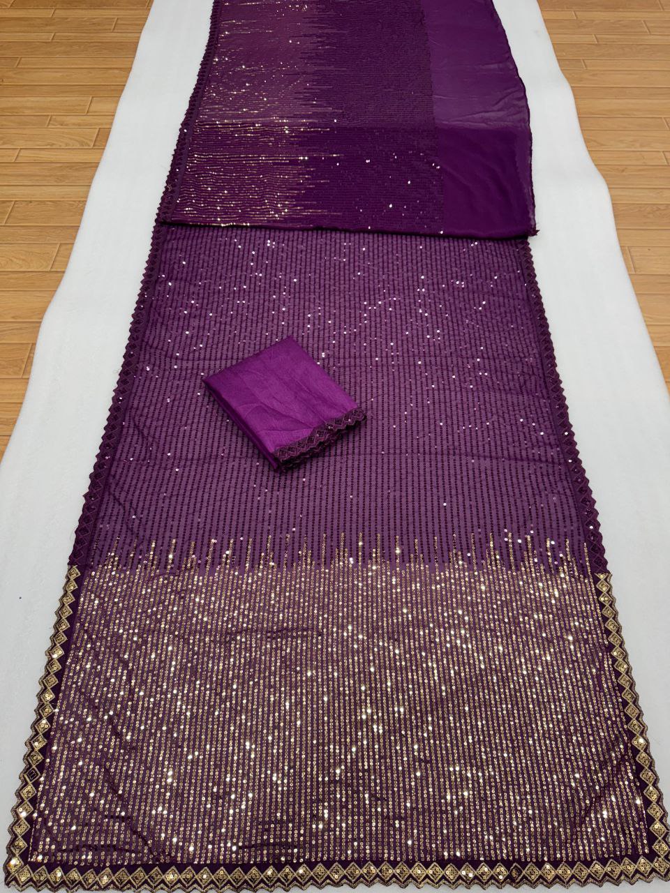 Women’s 60 GSM Georgette Saree with Heavy 5MM & 3MM Dual Sequin Embroidery | Cutwork Lace Border | 4.4M Work Done | Silk Blouse | Party & Festive Wear